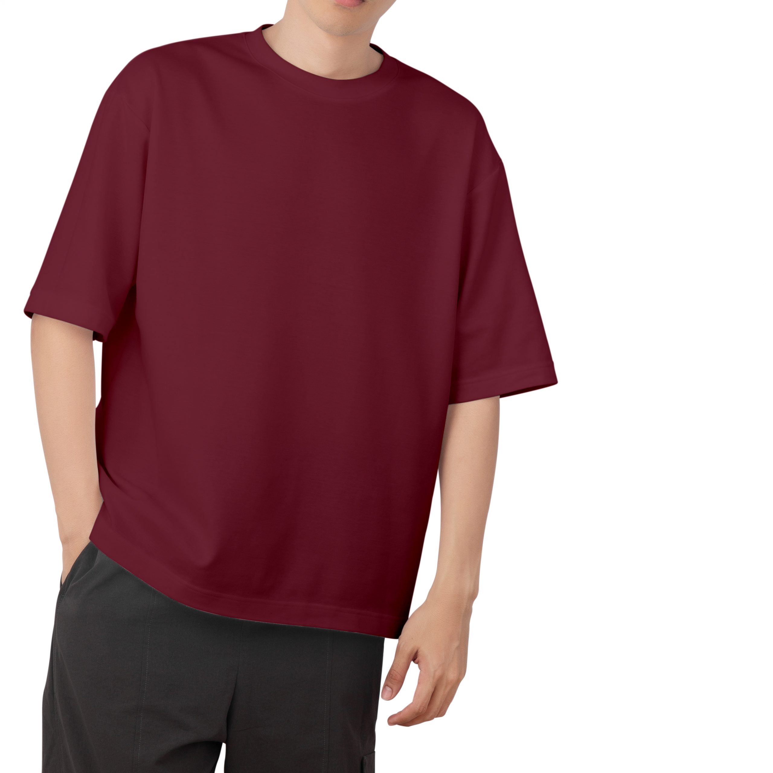 Pure Cotton Drop Shoulder-Maroon